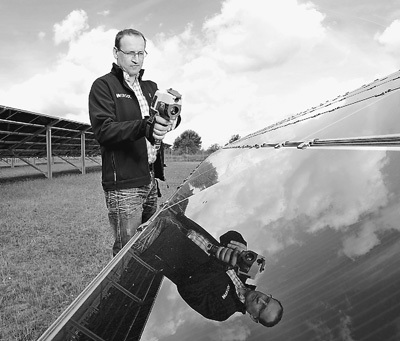 德国太阳能项目安装商沃尔索公司的员工在检测太阳能电池板的工作效率。图片由沃尔索公司提供