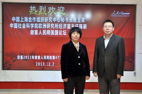 中国上海合作组织研究中心秘书长陈玉荣(左)、中国社会科学院欧洲研究所经济室主任陈新