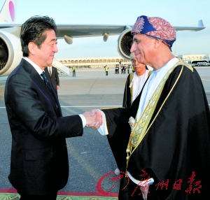 当地时间1月9日,阿曼马斯喀特,日本首相安倍晋三抵达访问,受阿曼副首相接待。