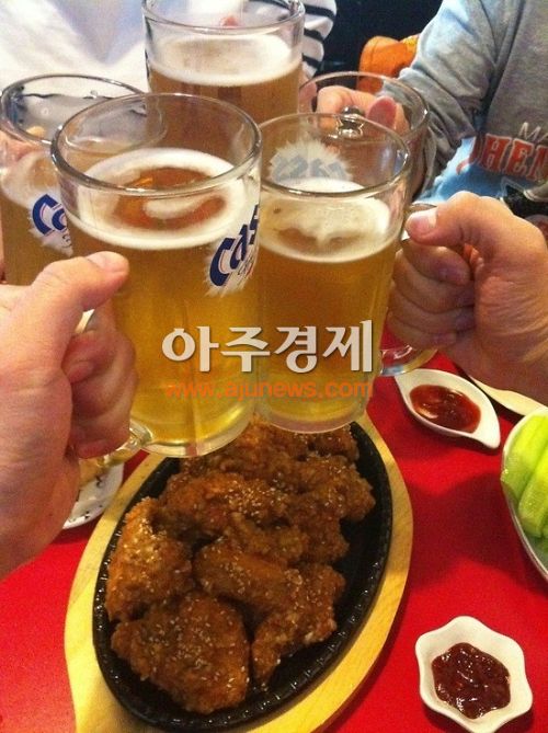 随着韩国SBS电视剧《来自星星的你》(以下简称“星星”剧)的热播,中国掀起“炸鸡和啤酒”热潮。韩国《亚洲经济》刊文称,“星星”剧风靡韩国,同时在中国也引起了巨大反响,人气话题双丰收。不仅剧中男女主角受到万千粉丝的追捧,最令人不可思议的是,竟然在中国掀起了“炸鸡啤酒”饮食浪潮。