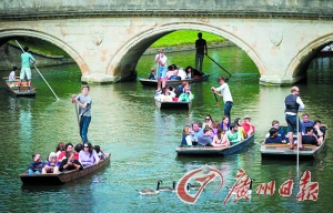 本报讯 据统计,目前剑桥康河上总共有260艘游船在运营,撑一艘12人的平底游船,1小时可带来150英镑的收入。