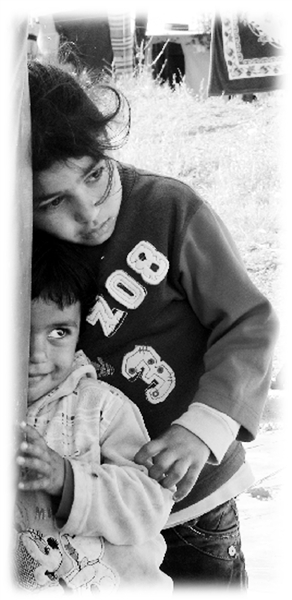 5月15日,在黎巴嫩东部贝卡谷地一叙利亚难民营,两名叙利亚难民儿童在期盼着国际救济和慈善机构分发食物。来源:新华网