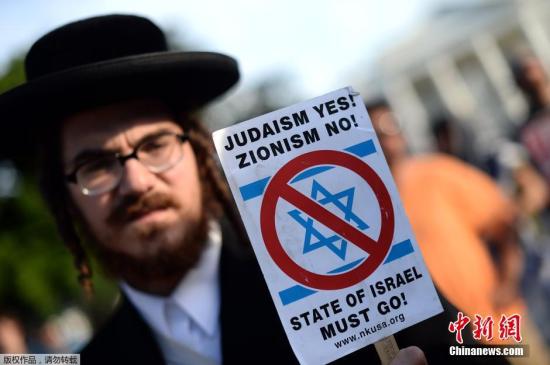 2014年7月16日,人们参加在华盛顿白宫门前的示威活动,抗议以色列对巴勒斯坦加沙地区的致命爆炸事件。 巴以冲突事件已导致223名巴勒斯坦人死亡,其中大部分为平民。