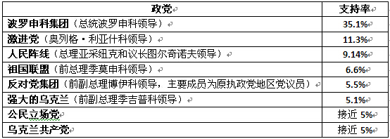 从最近的一份民调中便可窥视其端倪。根据乌克兰社会监控中心和乌克兰亚历山大 亚列缅科社会调查所于10月4-10日在全乌包括乌政府控制的顿涅茨克地区联合举行的问卷调查结果显示,8个政党支持率接近或超过了5%的选举门槛,有望进入新一届乌克兰议会,其支持率见下图(按照支持率从高到低排列):