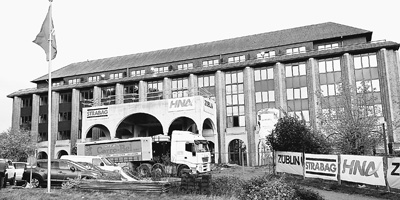 目前中国的对外投资领域开始向酒店、医疗、电信、地产等产业迈进。图为在比利时首都布鲁塞尔,由中国海航集团投资的酒店改造及扩建工程正在进行中。(吴刚 摄)