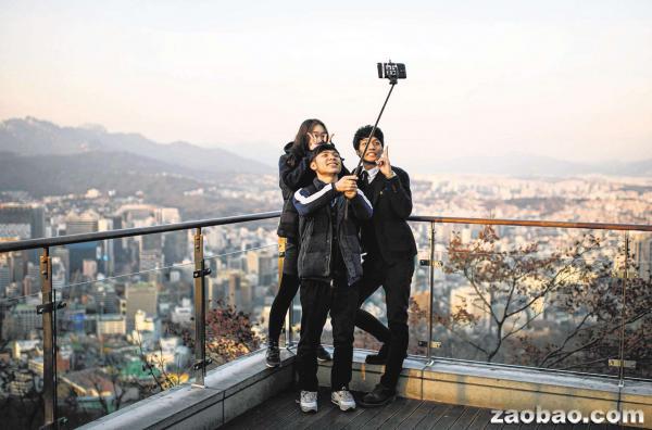 这组人把手机架在自拍杆上以首尔市为背景留影,就不知道他们的自拍杆是否是“合法”的。