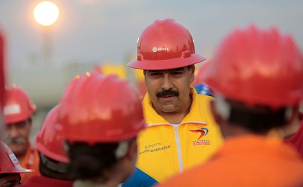 资料图片:马杜罗视察委内瑞拉石油公司炼油厂。