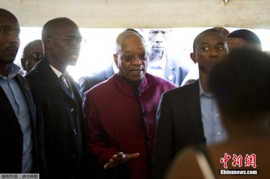 图为当地时间4月18日,南非德班,南非总统祖马紧急取消赴印尼活动,转而到此次骚乱事件最严重的德班探视被困的外国难民。祖马说,外国移民对南非经济发展作出贡献,带来了南非所需的技术,不应全都被打上“犯罪分子”的烙印。
