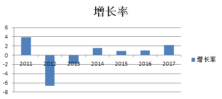 图二:伊朗2011-2017年GDP年增长率(含预测)