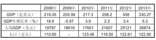 从宏观经济来看,巴林是经济发展较早的国家,当前经济形势基本稳定。巴林于1972年加入国际货币基金组织,并于1995年成为世界贸易组织正式成员,同时还是海湾阿拉伯国家合作委员会(GCC)成员。根据联合国发展署发布的2013年度人类发展报告,巴林在178个国家中排第48名,在阿拉伯国家中仅次于卡塔尔和阿联酋。 根据2007年联合国公布的发达国家标准,巴林属于准发达国家,而事实上巴林的人均GDP早已超过发达国家的门槛,2013年达到了26874美元。(如图二)