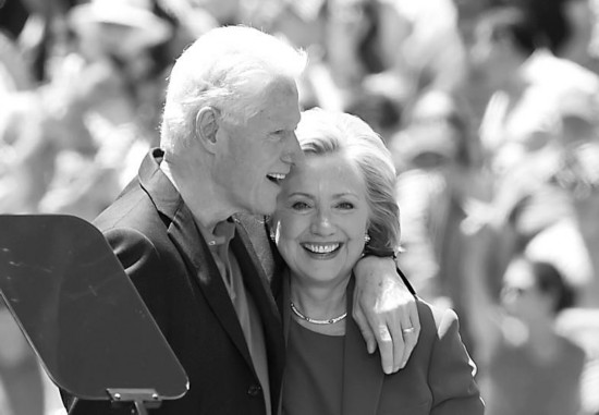 希拉里与克林顿13日在演讲活动中秀恩爱。