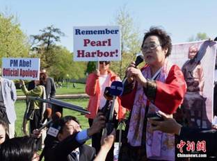 韩裔组织华盛顿慰安妇问题联盟4月曾在华盛顿举行记者会,要求安倍访美时就慰安妇问题进行真诚、直接的道歉,而不是摆出无辜旁观者的姿态。87岁的慰安妇受害者李容洙表示,她愿意以历史见证者的身份站在安倍面前,要求他为这段历史道歉。