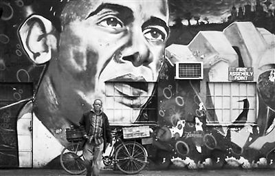 在肯尼亚首都内罗毕街头,奥巴马的形象被画成壁画(图片来源:中新网)