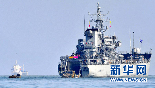 3月7日的美韩军演中,韩军突击登陆车辆向登陆舰移动。新华社发