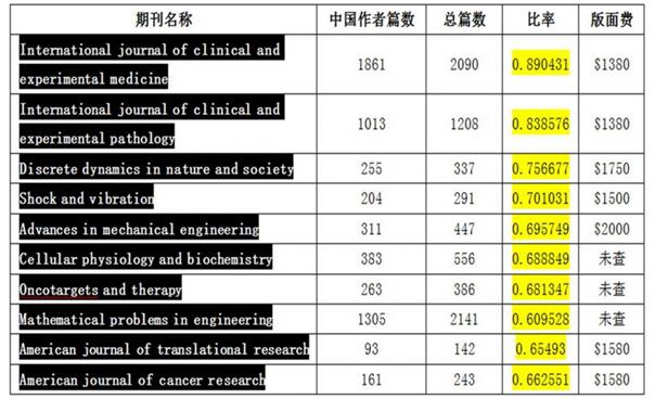 在OA期刊发展过程中,来自中国的论文数量庞大,而这一重要的影响因素不可忽视。喻海良曾无意中发现两个不是很有名的期刊,中国作者发文居然均超过1000篇,于是整理出10个中国作者发文超过60%的国外OA期刊。