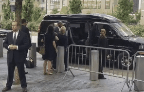 希拉里突然离席911纪念仪式,网上曝光一段视频显示,希拉里在上车前突然失去“自我控制”,双膝显得发软弯曲。需要他人搀扶,此前因咳嗽被诊断出肺炎。希拉里突然离席911纪念仪式,上车前失去自我控制,需要他人搀扶,此前因咳嗽被诊断出肺炎。美国民主党总统候选人希拉里星期天在纽约市参加纪念911遇难者活动时,突然感到身体不适,提前离开,前去女儿的公寓中休息。剧俄罗斯卫星网9月12日消息,美国民主党总统候选人希拉里·克林顿的私人医生在悼念“9·11”恐怖袭击遇难者仪式前,诊断希拉里患有肺炎。据报道,希拉里竞选团队发言人尼克·梅里尔早前证实,希拉里在纽约举行的“9·11”恐怖袭击遇难者悼念仪式上感觉身体不适。希拉里的此前的一段演讲视频在社交媒体上热传,视频中希拉里不断的咳嗽,时间竟然长达四分钟