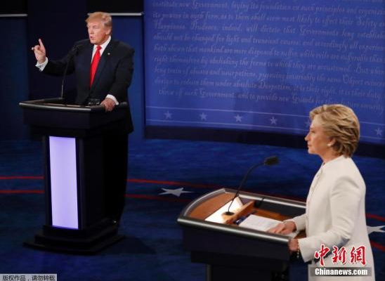 当地时间2016年10月19日,美国拉斯维加斯,2016美国总统大选第三场辩论也是最后一次辩论在美国内华达大学拉斯维加斯分校举行。