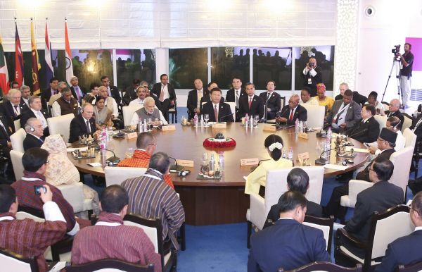 10月16日,金砖国家领导人同“环孟加拉湾多领域经济技术合作倡议”成员国领导人对话会在印度果阿举行。(新华社发)