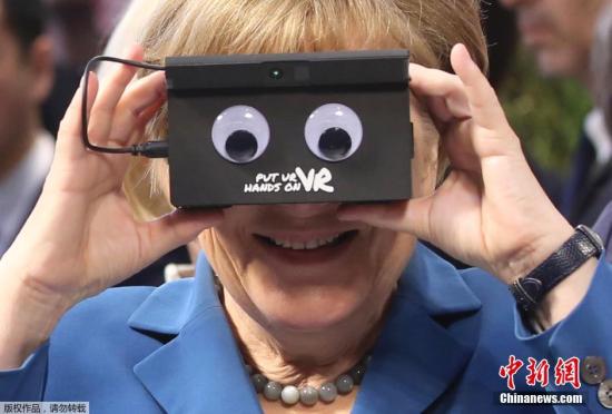 资料图:当地时间2016年4月25日,德国汉诺威,美国总统奥巴马在德国总理默克尔的陪同下出席并参观了汉诺威工业博览会,对各种新奇的工业装置兴趣十足。