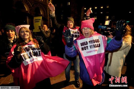 当地时间2017年2月3日,美国华盛顿,当地爆发大规模反特朗普游行。