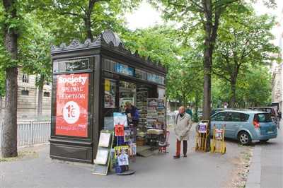法国总统选举第二轮投票将于5月7日举行。图为首都巴黎街头贴有大选特刊广告的报刊亭。人民日报记者 李永群摄