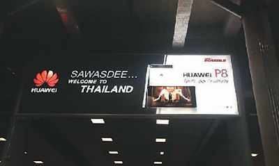 图为肖成真在泰国街头看到的华为手机广告牌。