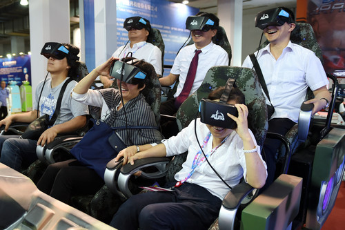 资料图片:2017年6月8日,参观者在科博会上体验虚拟现实设备。新华社记者 鞠焕宗 摄