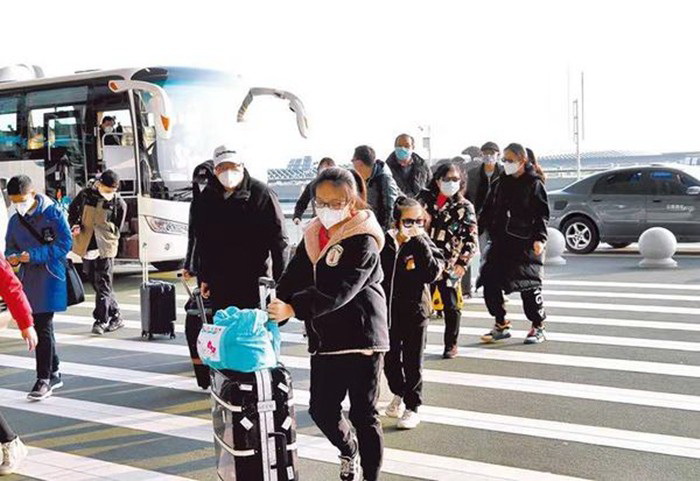 首批因新冠肺炎疫情滞留湖北的台胞返台。(图片来源:中新社)