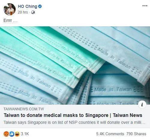 民进党当局先前在1月份宣布口罩禁止“出口”,新加坡新科工程公司在台湾的两条口罩生产线受到影响。双方交涉无果后,新加坡2月即将生产线撤回,直到3月初才能生产口罩,如今台湾却捐给新加玻口罩。
