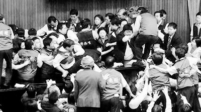 台“立法院”经常上演“全武行”。(图片来源:台媒)