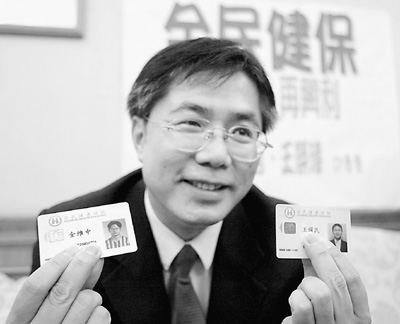 一位台湾民意代表正在展示“健保卡”。