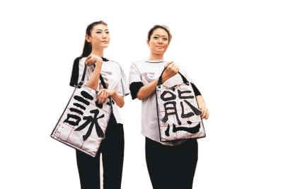在“汉字时尚、品味生活”主题特展中,模特展示含有汉字元素的包。 安源摄