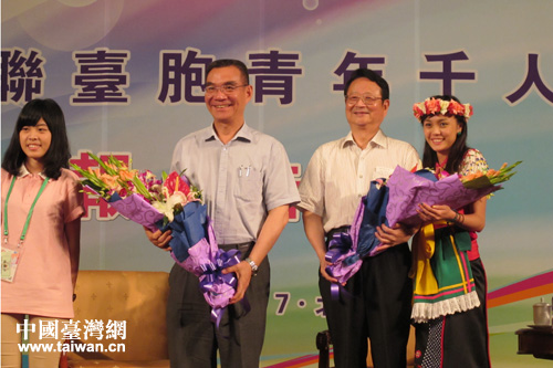 报告会结束,台湾学生向两位“毅夫”献花。(图片由本文作者提供)