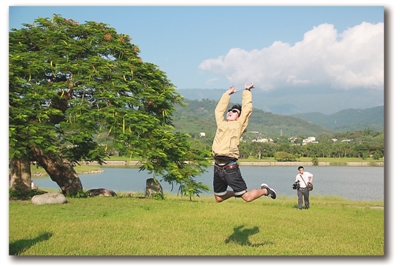 大陆年轻游客在台东池上乡的风景里“任性”。