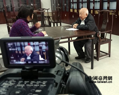 大学生采访厦门文史专家洪卜仁。(图片来源:中国台湾网)