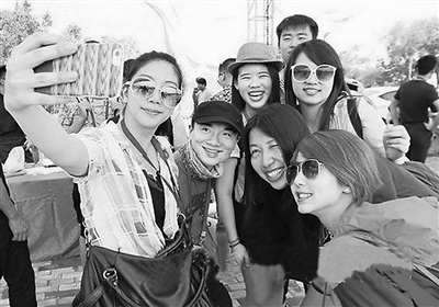 两岸青年一同在厦门参加骑行后,兴奋地自拍合影。张奇辉摄