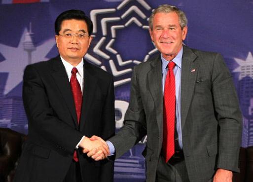 | 胡布记者会,透露出来的整体氛围,却是一个和平崛起的中国,和一个身陷北韩伊朗争议的美国之对比。(图片来源:中评网) |