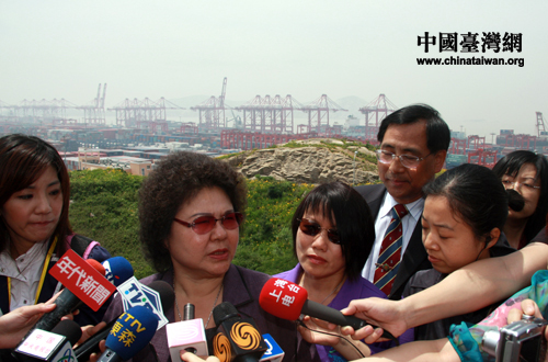5月24日,陈菊在上海洋山深水港展示中心外接受媒体采访。当天上午,在上海市参访的陈菊一行来到洋山深水港参观并了解港口运行的有关情况。(中国台湾网 田云鹏 摄)