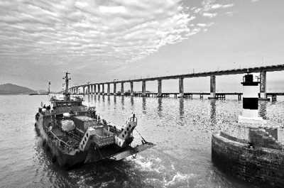 平潭海峡大桥2010年11月建成通车。岛上汽车与居民从此告别出行完全依靠轮渡的历史。(新华社发)