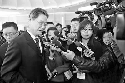 论坛上,国台办主任张志军被两岸记者包围。中新社发