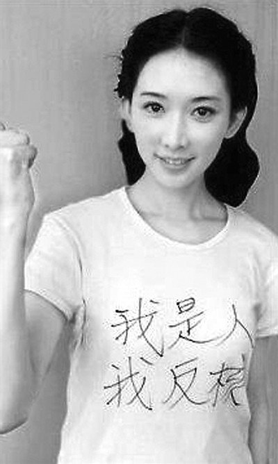 2013年的台湾反核游行,名模林志玲穿着“我是人我反核”T恤参加。(图片来源:台湾媒体)