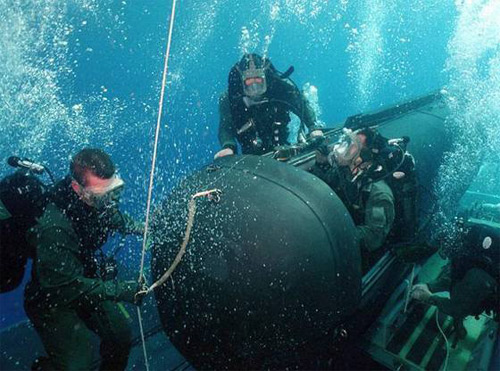 “俄亥俄”所搭载的特种部队是美国海军的“海豹”突击队。该部有66人,他们既可以通过发射管“射”出艇外,然后着蛙人装登陆作战,也可以乘挂在潜艇外部的两艘最新微型潜艇出发作战。