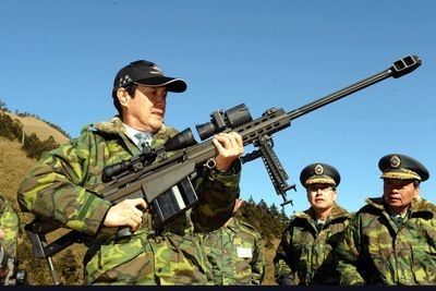 马英九慰问台军士兵时亲自操练雪地狙击装备