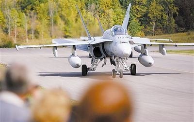 9月18日,在加拿大首都地区的加蒂诺-渥太华行政机场,观众观看一架加拿大F-18大黄蜂战斗机降落。当日,加拿大举行老式飞机飞行表演,以此向第一次和第二次世界大战中的三位加拿大维多莉亚十字勋章获得者表达敬意。新华社发