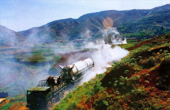 资料图:解放军二炮固定发射井内的远程战略导弹发射