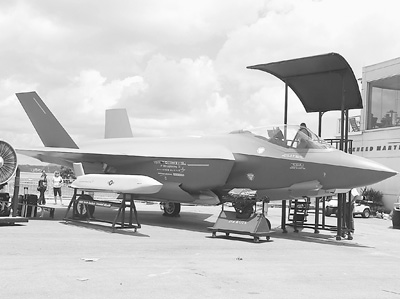 去年12月,日本宣布购买42架F—35“闪电Ⅱ”战机,这让F—35战机成为本次航展的明星飞机。记者在洛克希德·马丁公司独立展厅外看到,工程师们正在为一架F—35的1∶1原型机做开幕前的最后检修工作(见图,于景浩摄)。战机旁还陈列其先进的光电跟踪系统、联合空对地防区外导弹等。