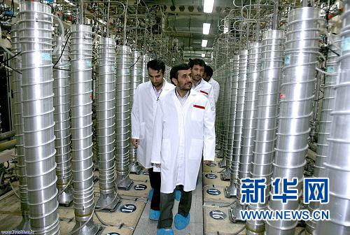 2012年2月15日,据伊朗新闻电视台报道,伊朗专家已于当日将首批国产核燃料棒装载至德黑兰研究用反应堆。电视画面显示,伊朗总统艾哈迈迪-内贾德在伊朗官员和科学家的簇拥下观摩了核燃料棒加载过程。这是2008年4月8日,伊朗总统艾哈迈迪-内贾德视察纳坦兹核设施。新华社发【资料图】