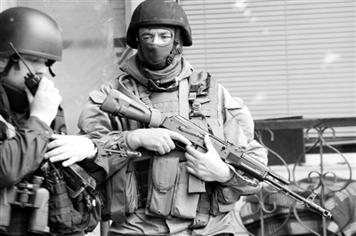 5月5日,在乌克兰东部城市斯拉维扬斯克附近,乌克兰士兵在一处检查站警戒。乌克兰内政部称,5月5日,乌克兰士兵与亲俄武装发生交火,造成4名士兵死亡,30人受伤。新华社/法新