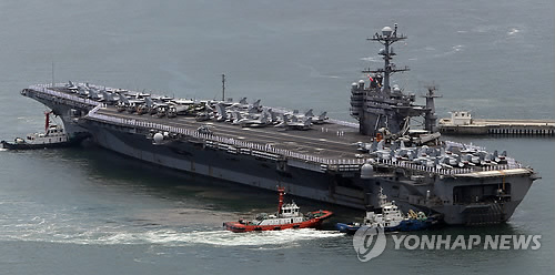 “乔治·华盛顿号”于本月11日下午抵达韩国釜山港。(韩联社)