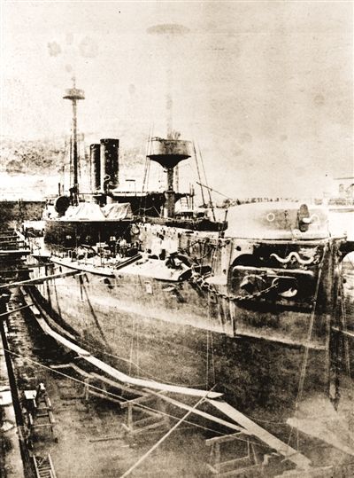 甲午海战中被日舰击伤的镇远舰(资料照片)